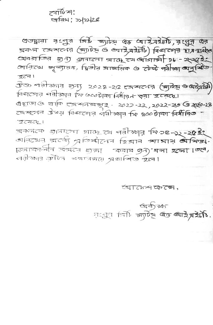 Exam 2025 Notice